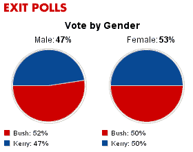 exit poll chart shows John Kerry leading George W. Bush by 4 percentage