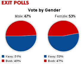 exit poll chart shows John Kerry leading George W. Bush by 4 percentage